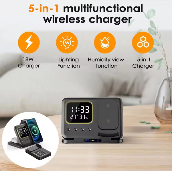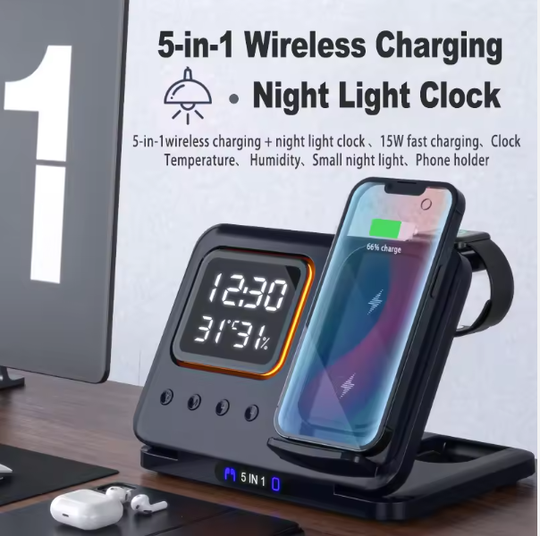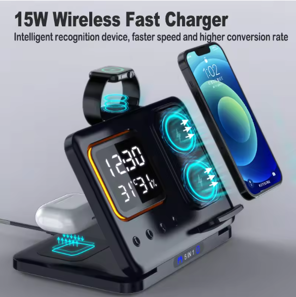 Upgrade your life with our premium 6-in-1 Charging Station. Enjoy the convenience of a wireless charger(Phone, Buds, Watch), alarm clock, and Pen Holder (For 6 in One Package) in one sleek package. Stay organized and connected with this elegant piece from our Exporter collection.